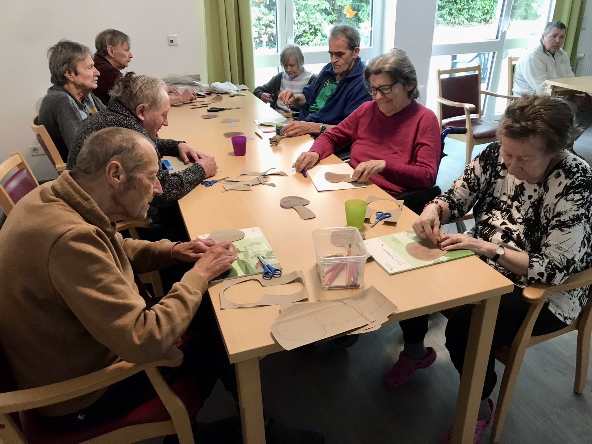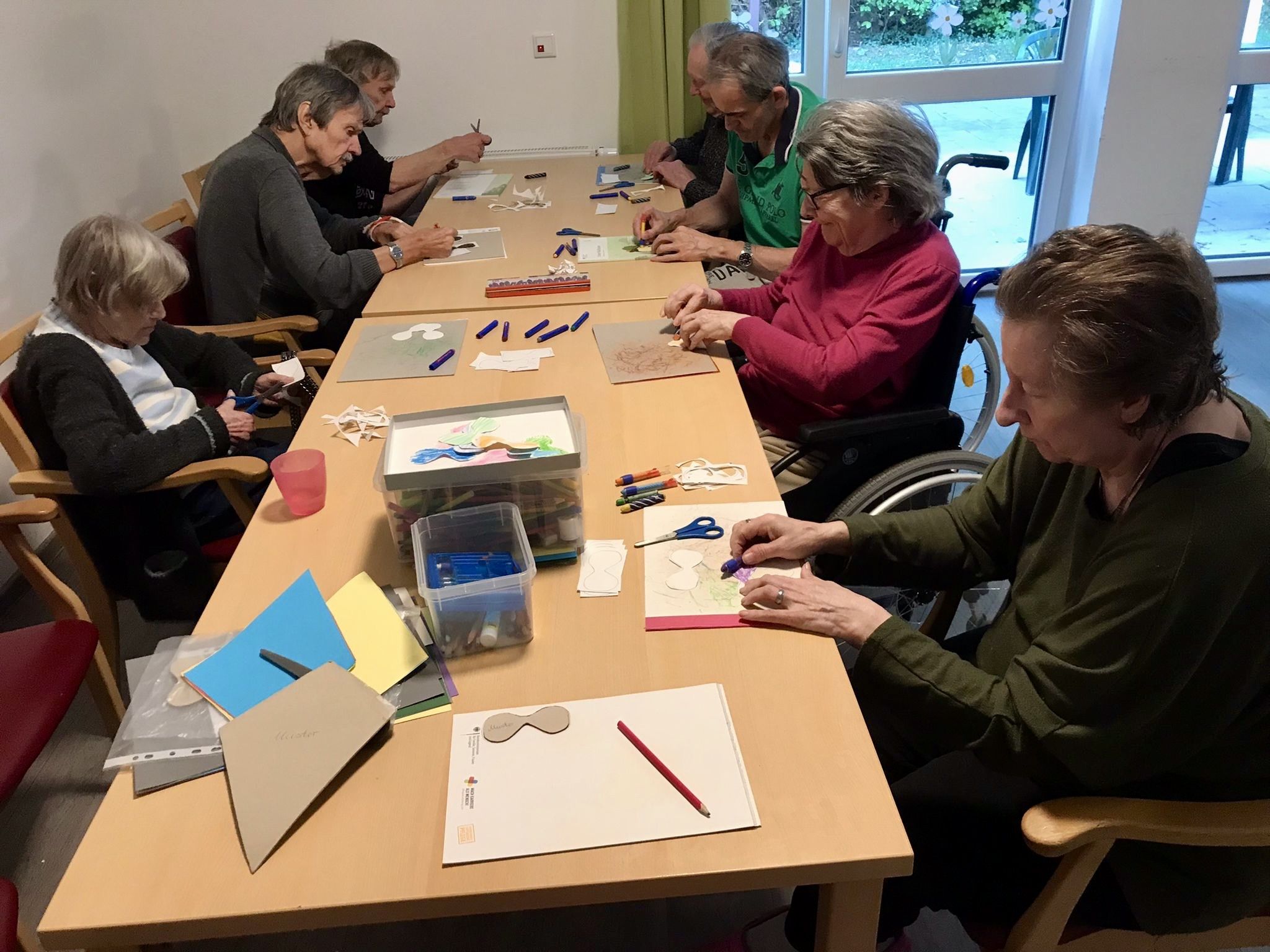 Am Freitag saßen einige Bewohner mit unserer Betreuungskraft zusammen und haben neue Fensterdekorationen hergestellt.