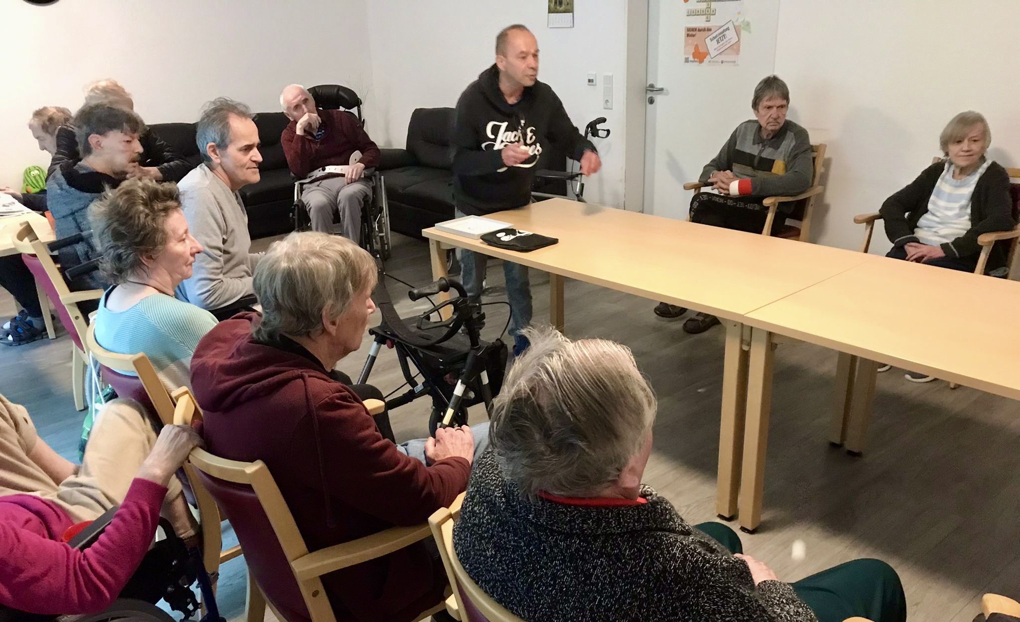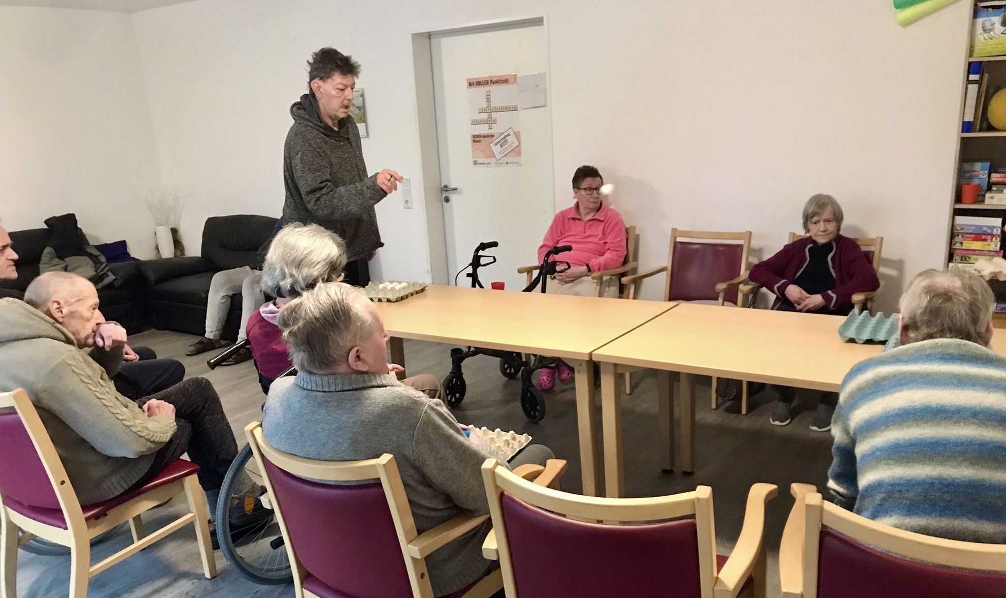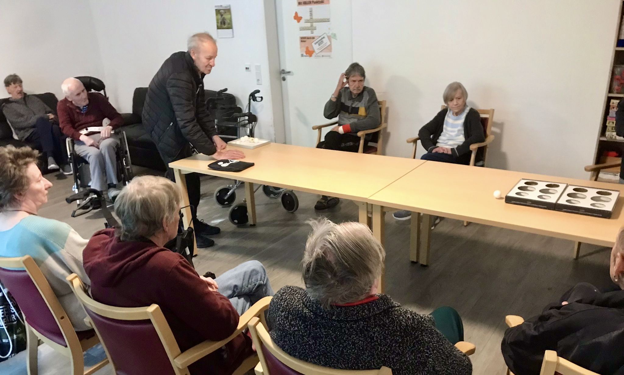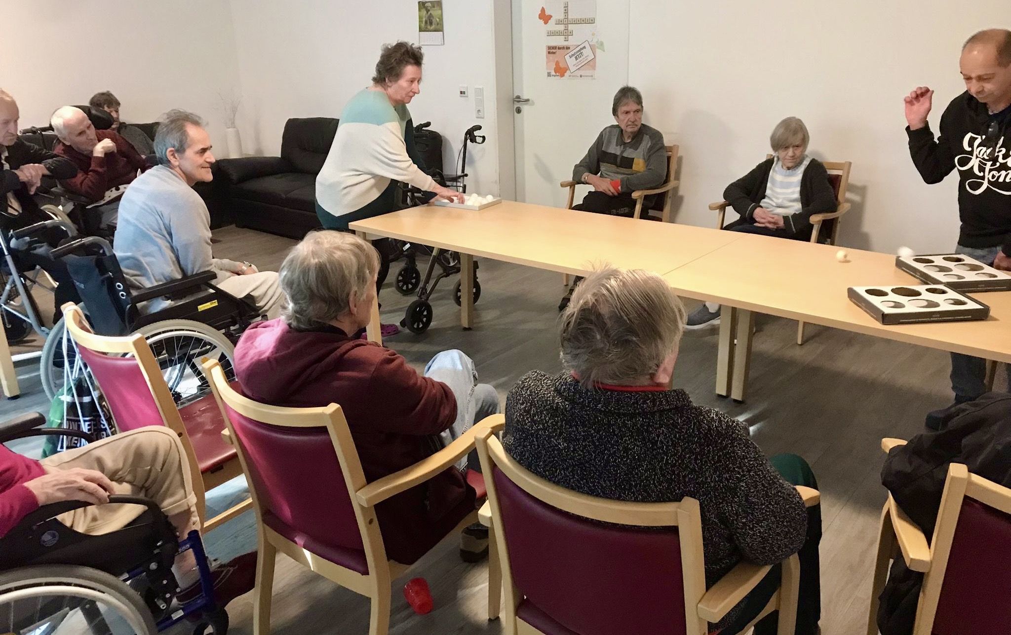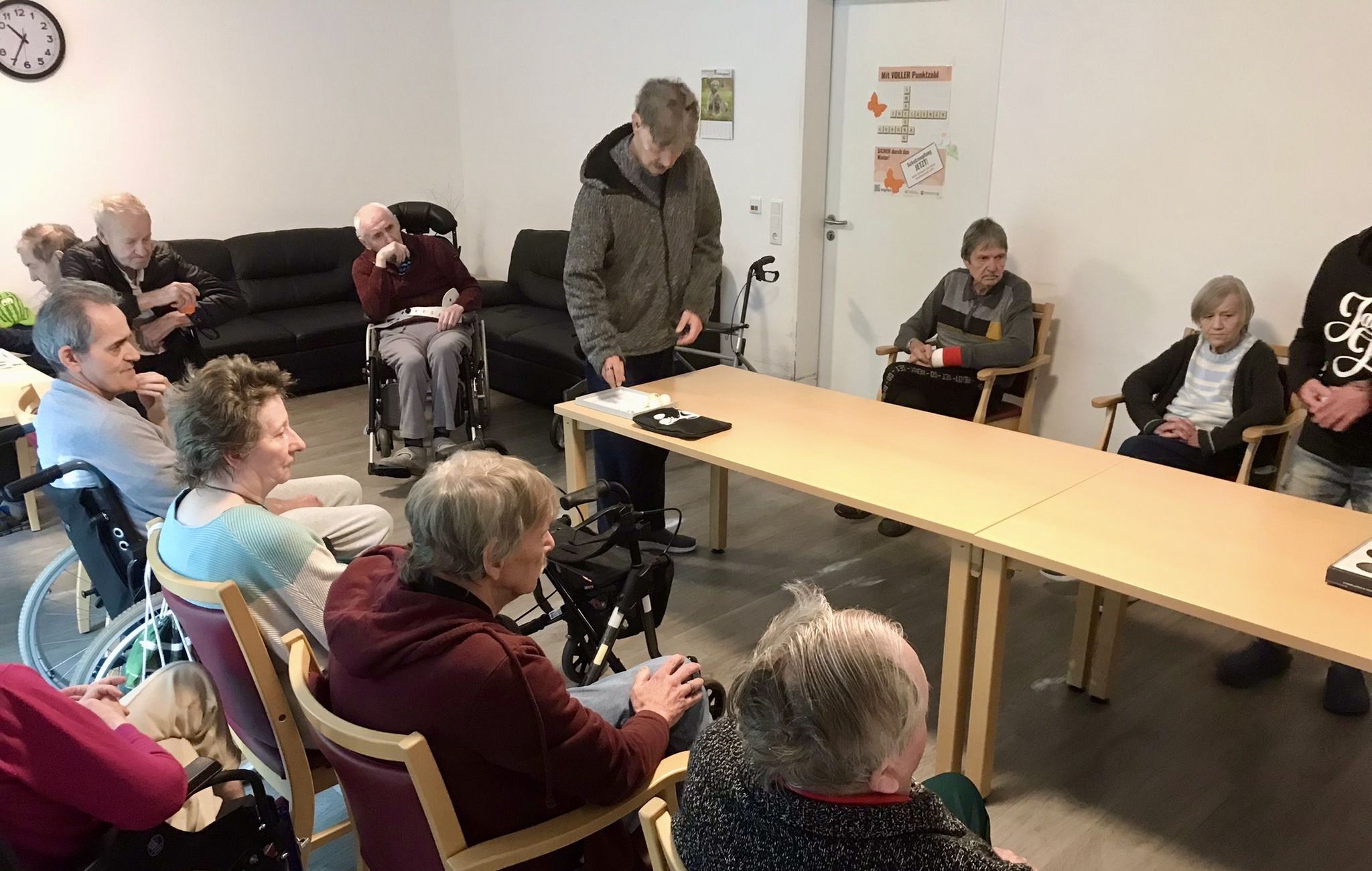 Am heutigen Vormittag kam unsere Betreuungskraft mit einem neuen Spiel zu unseren Bewohnern.