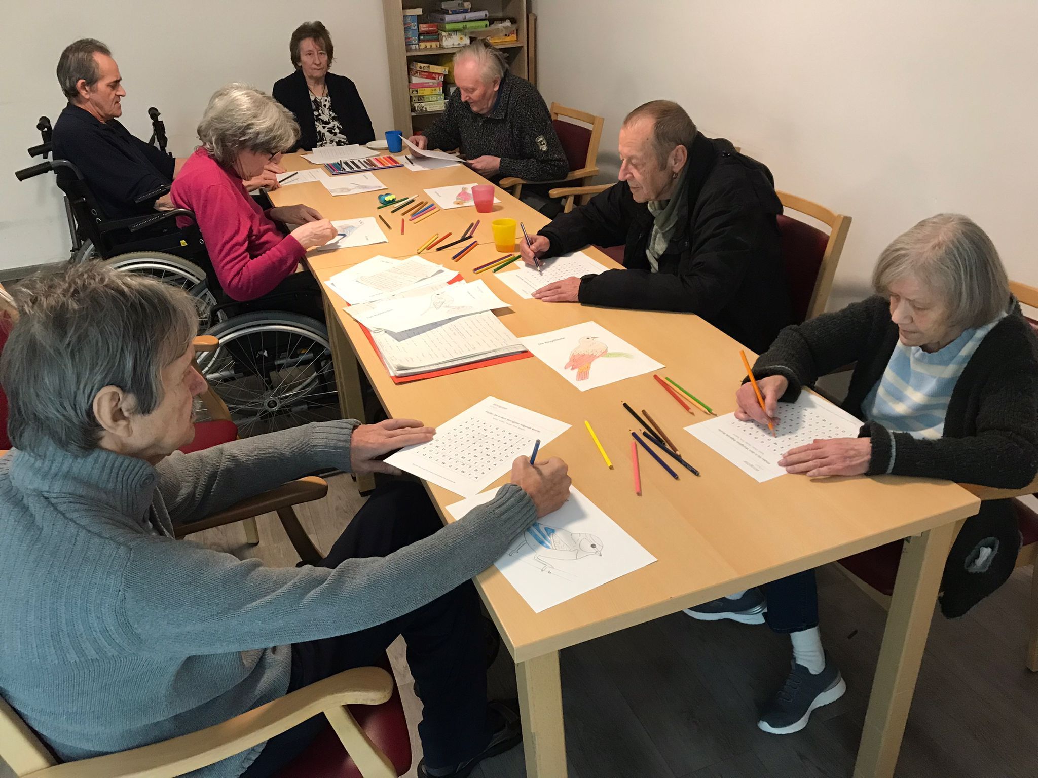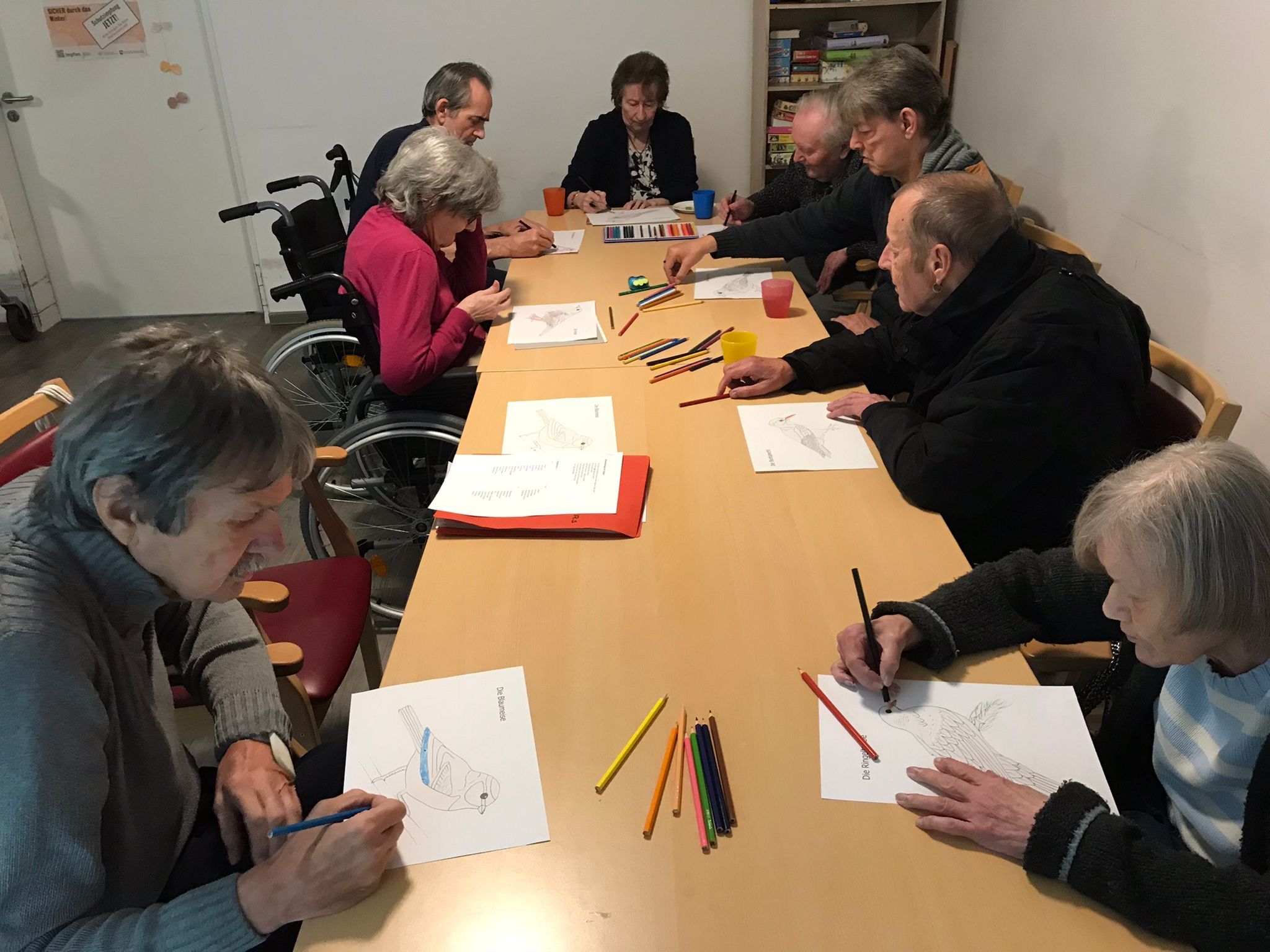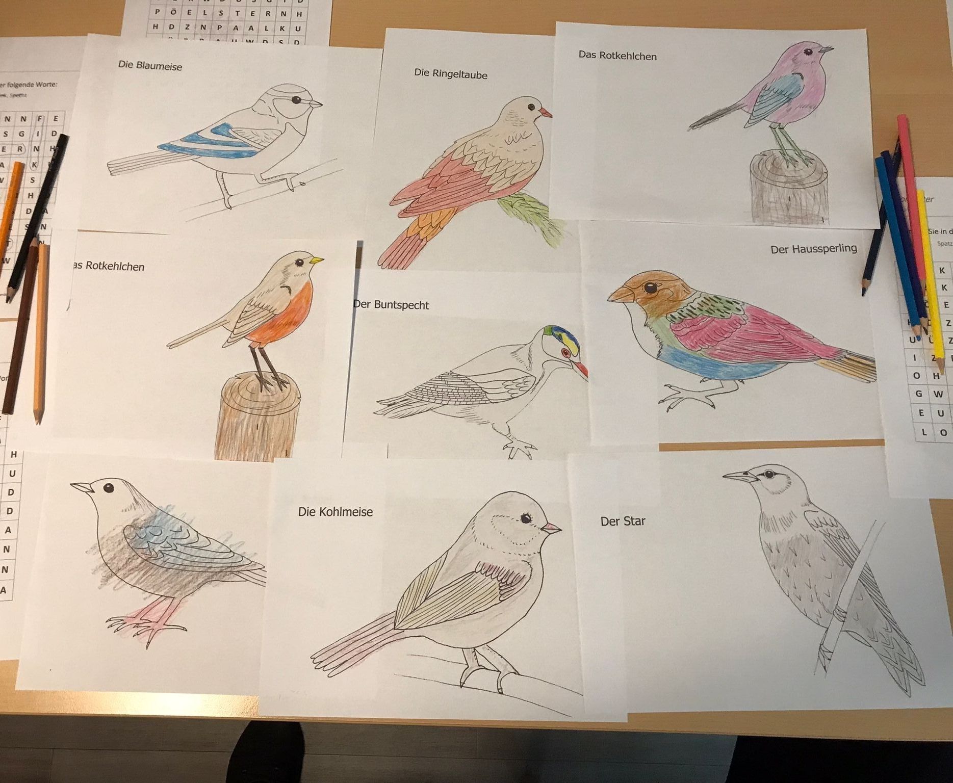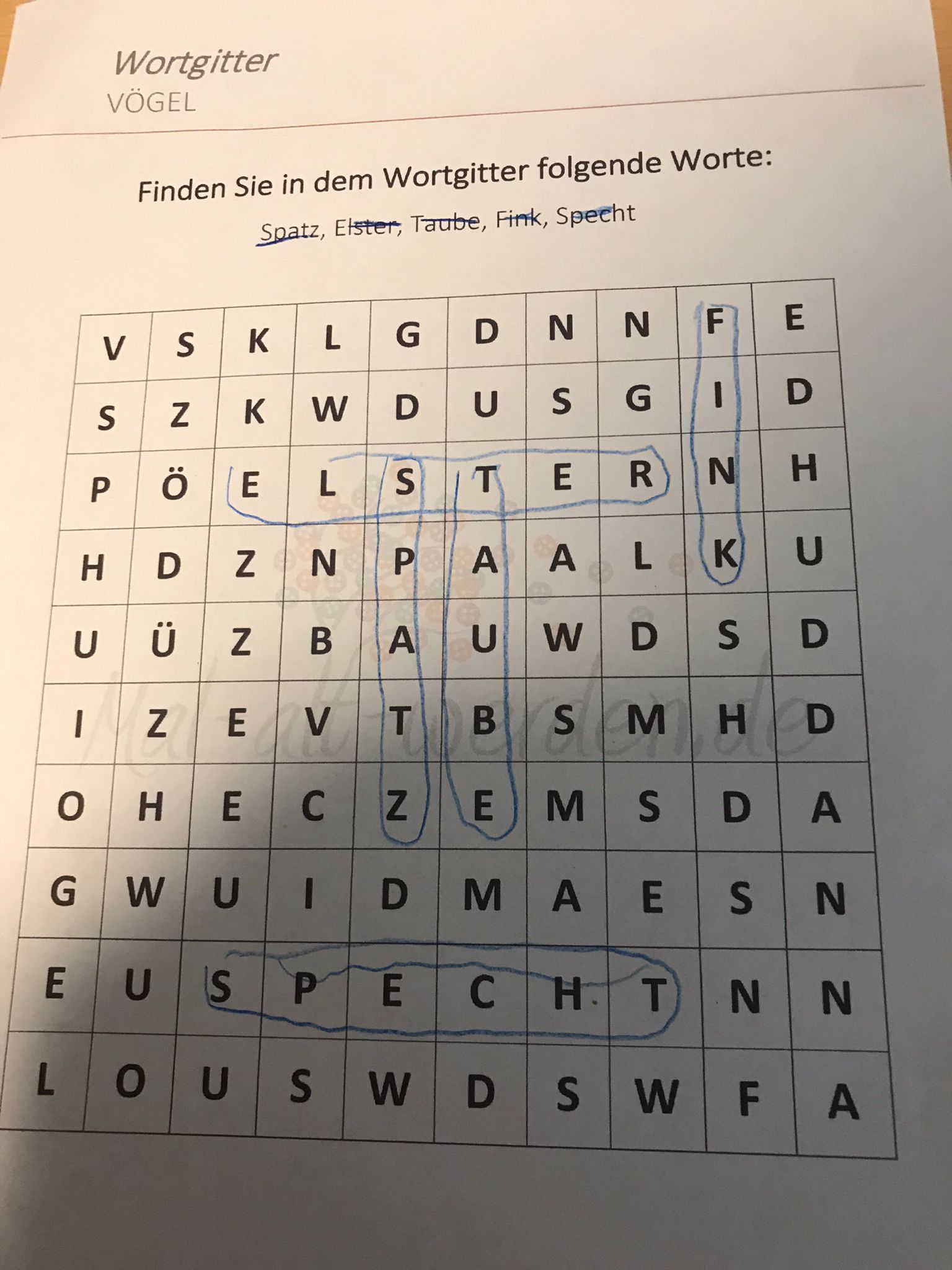 Außerdem gab es ein Wortgitter passend zum Thema und diverse Ausmalbilder mit unterschiedlichen Vogelarten. Dies kam bei unseren Bewohnern besonders gut an und gab der Runde etwas Abwechslung.