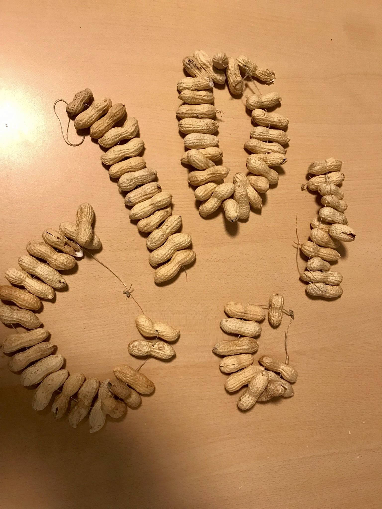 Am Dienstag wurde das Thema dann nochmal kurz aufgegriffen und für die Vögel, in unserem Garten, schöne Futterringe aus Erdnüssen hergestellt.