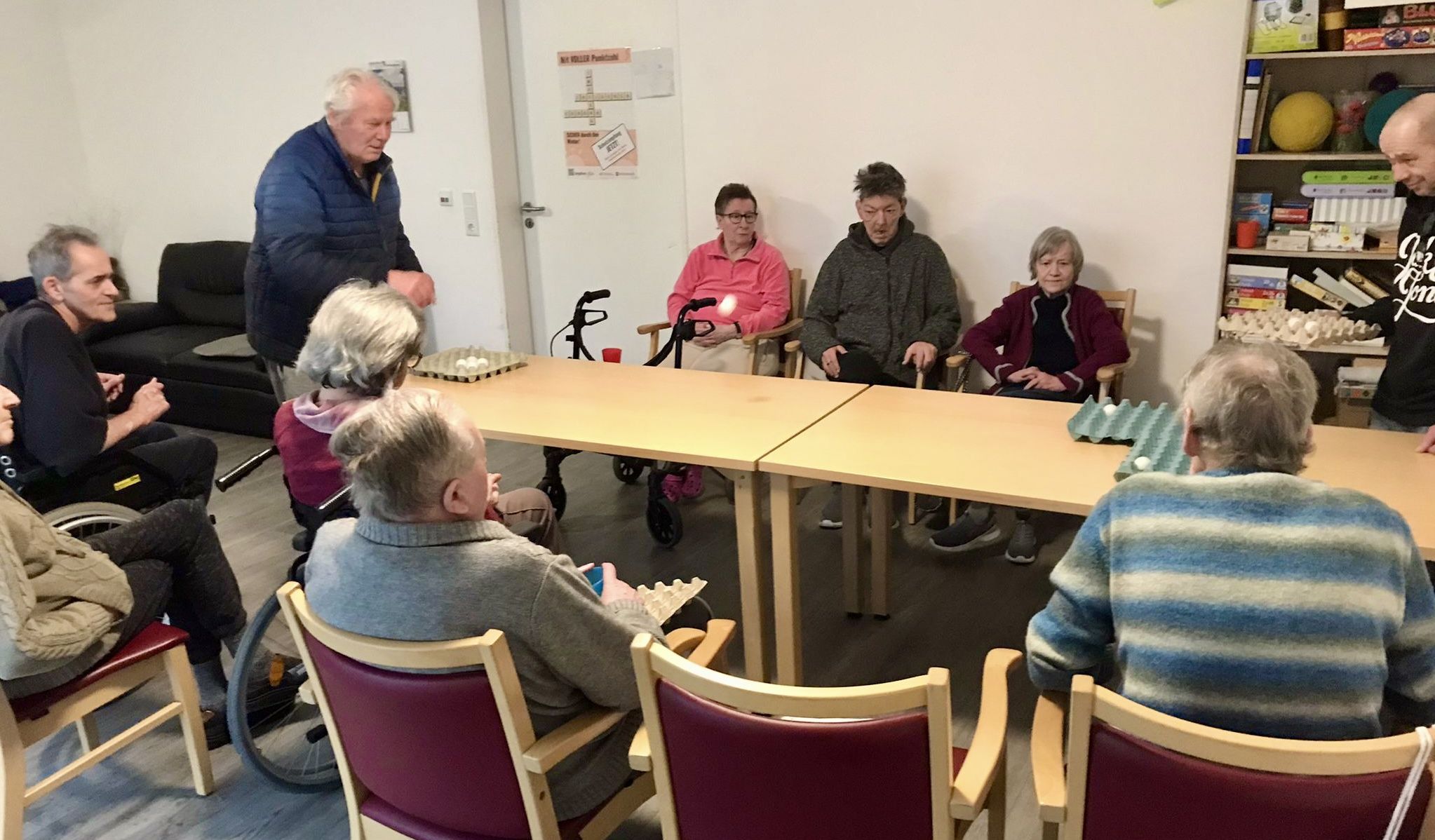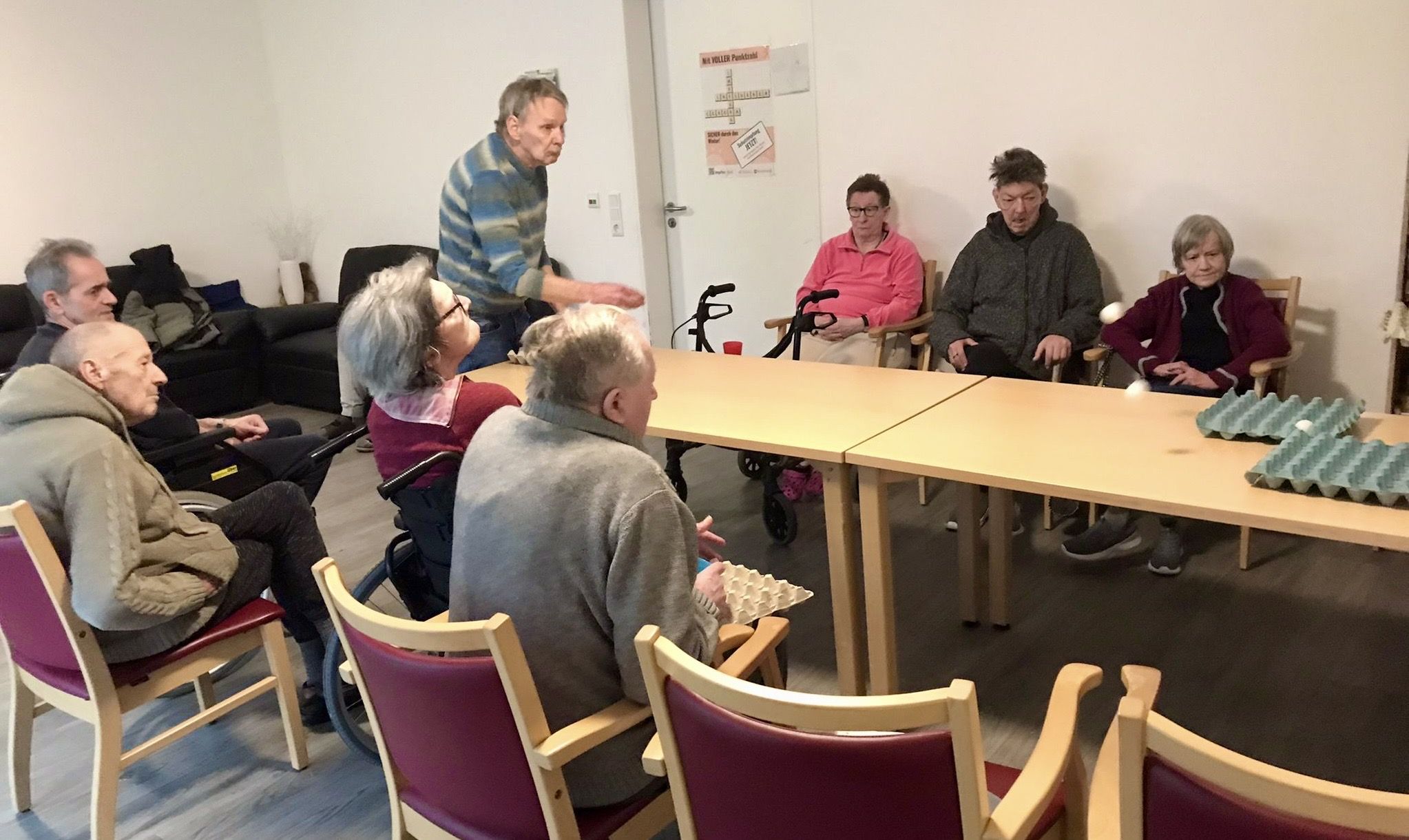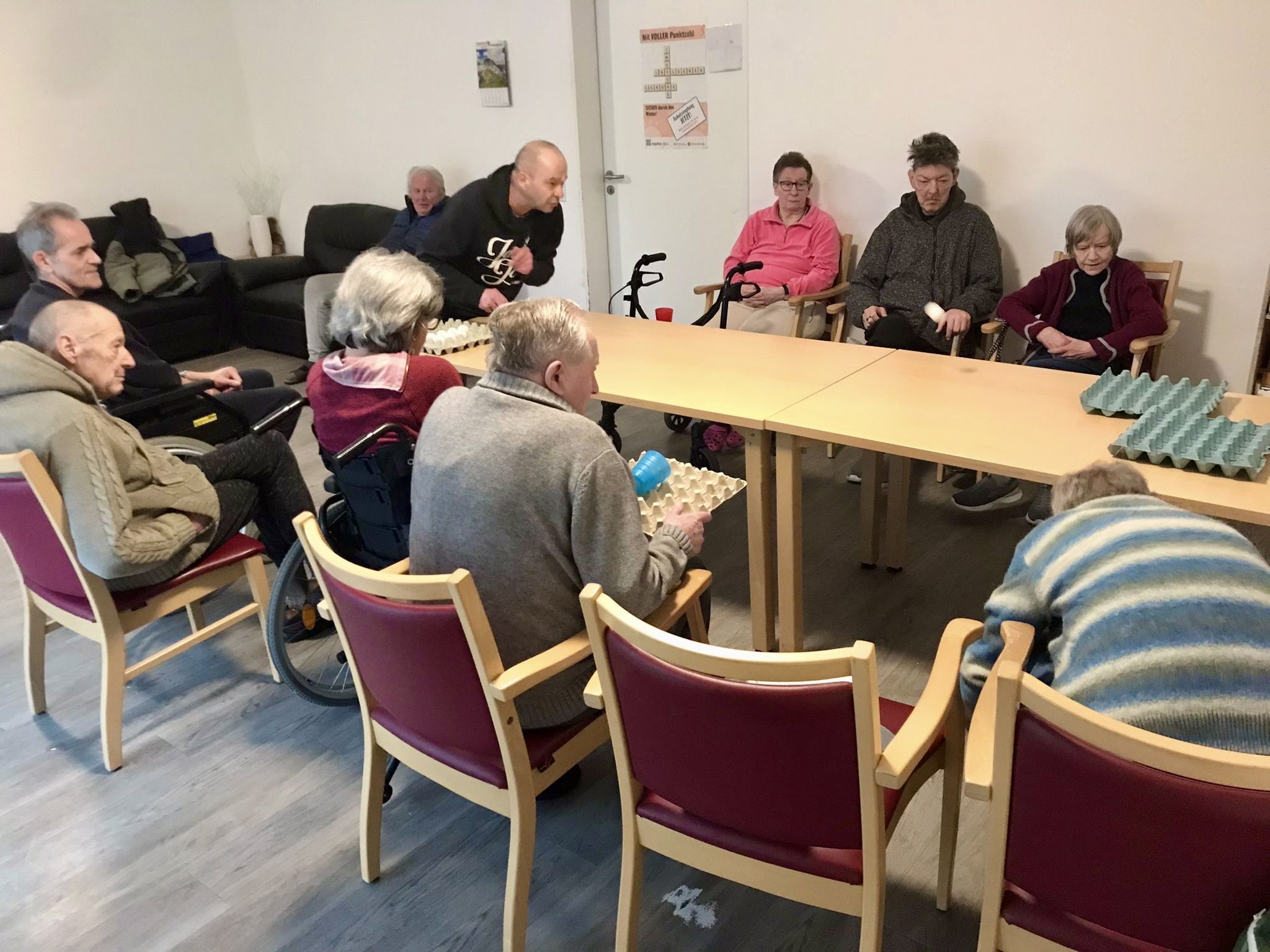 Am Montag haben sich unsere Bewohner mit unserer Betreuungskraft im Wohnzimmer getroffen und gemeinsam Dosenwerfen gespielt.
