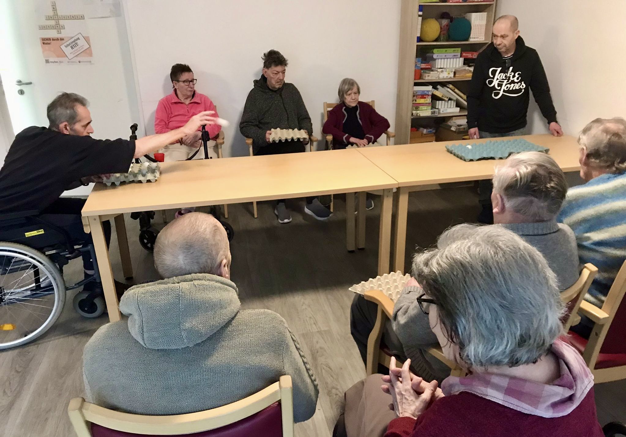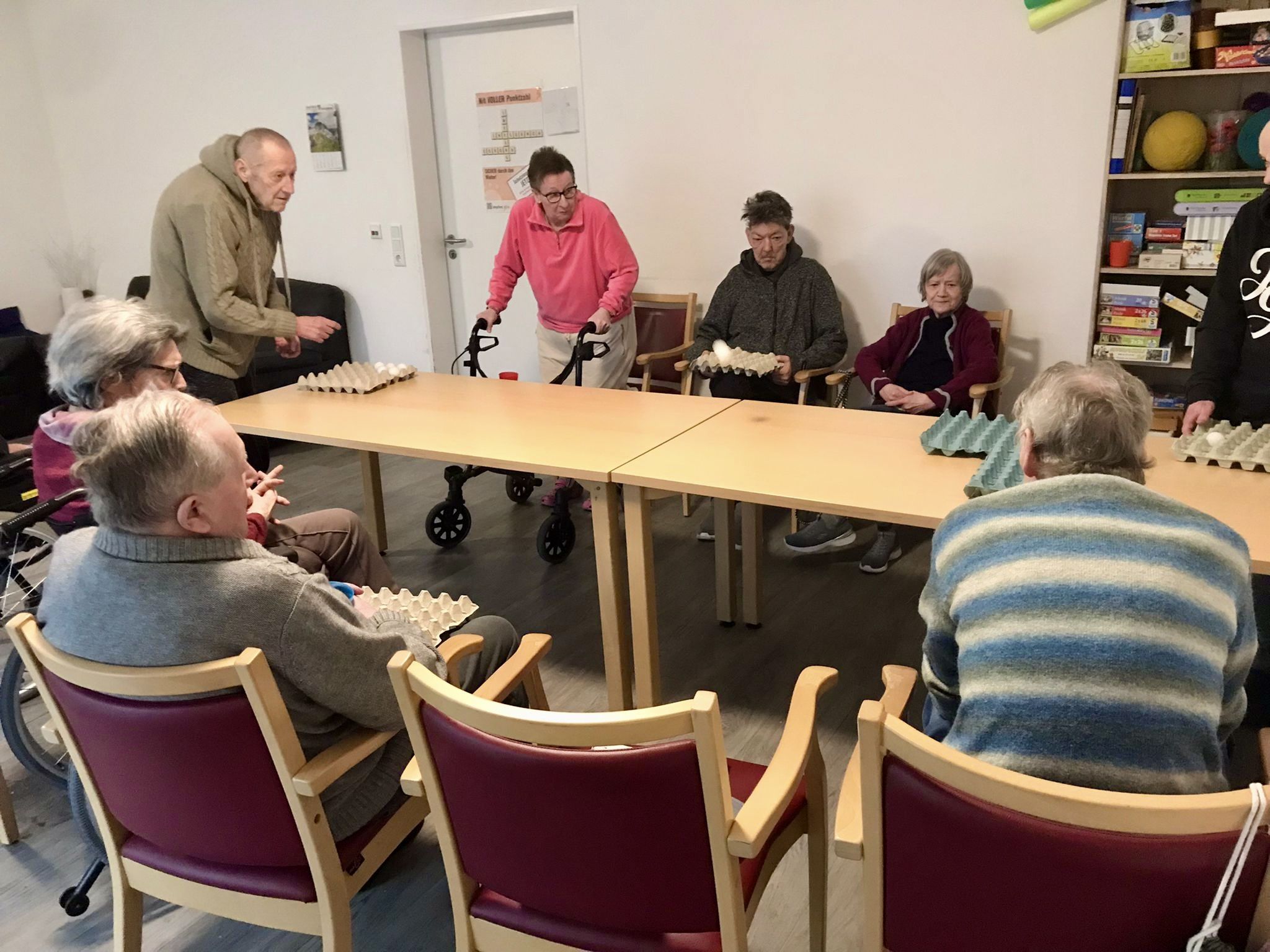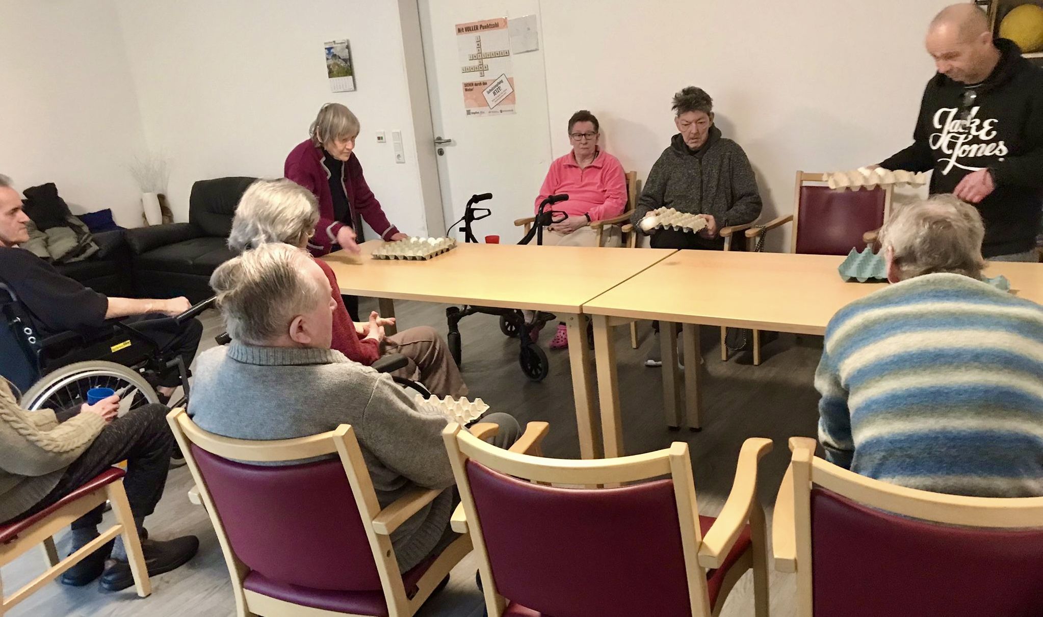 Am Montag haben sich unsere Bewohner mit unserer Betreuungskraft im Wohnzimmer getroffen und gemeinsam Dosenwerfen gespielt.